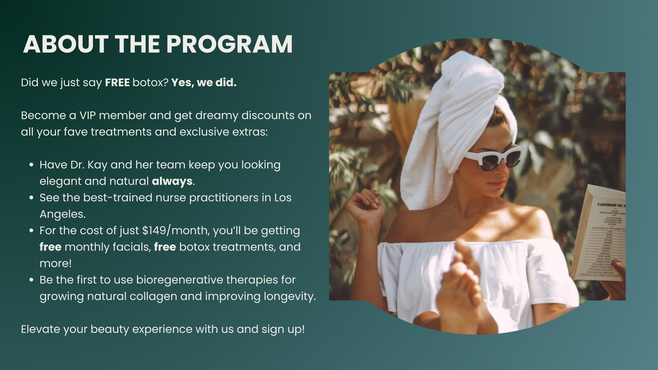Receive a botox treatment every 3 months for a total of 4 free treatments! Get a complimentary 40 units for each session, and any additional units are only $9/unit!